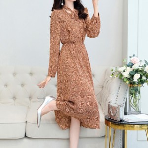 シャツワンピース ロング丈 長袖 大人かわいい 肩フリル ワンピース 大人可愛い 秋冬 レトロ リボンタイ スリム オフィス レディース 通販 Lineポイント最大get Lineショッピング